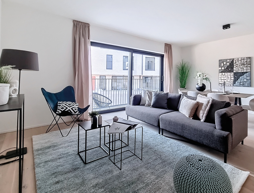 Cinq immeubles déploient leurs façades gris clair et s’implantent autour d’une esplanade privée dont les qualités urbaines et paysagères ont été murement réfléchies en collaboration avec les bureaux d’architecture DDS+ et paysagiste Eole. Toutes les commodités sont présentes : parking souterrain, emplacements pour les vélos, accès pour les personnes à mobilité réduite… Les appartements sont spacieux, lumineux et disposent chacun d’un espace extérieur, afin d’offrir le meilleur confort à leurs occupants. Les bâtiments respectent les normes les plus strictes en termes de performances énergétiques, ce qui se traduit par un PEB A pour une grande partie des appartements et même Q-ZEN pour certains.